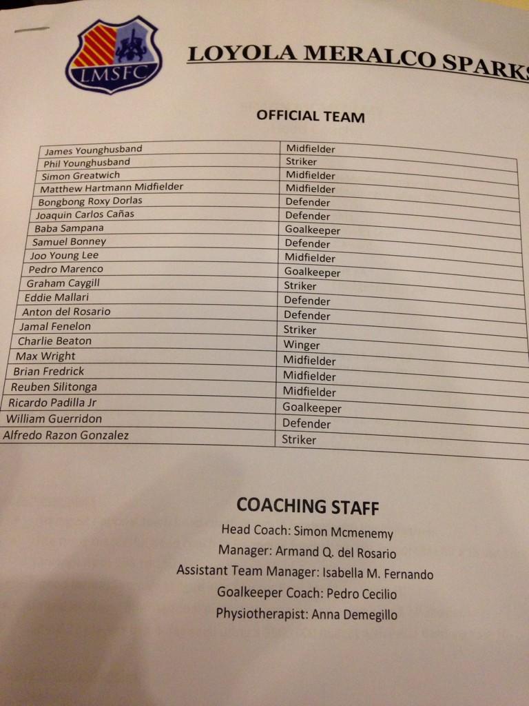 Loyola Meralco Spark - Roster for UFL FA League Cup