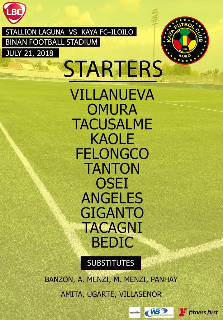 Kaya Iloilo: Villanueva, Omura, Tacusalme, Kaole, Felongco, Tanton, Osei, Angeles, Giganto (Villasenor 70′), Tacagni (Amita 70′), Bedic